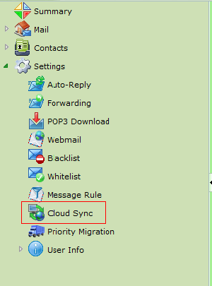 Log into your webmail and navigate to Settings | Cloud Sync. On the left pane you should be able to see the following: